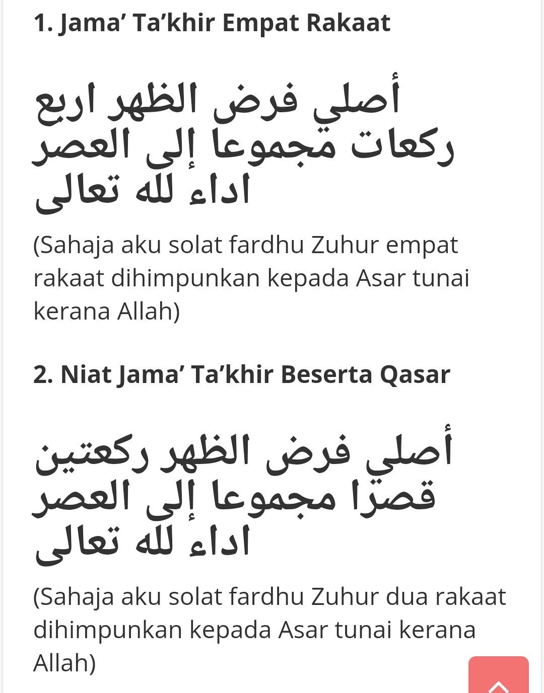 Aku berniat sholat ashar 4 rakaat dijama’ dengan dhuhur, fardhu karena allah ta’aala. Sahaja aku solat fardu asar qasar dua rakaat jamak takdim kerana allah taala. Tata cara sholat jamak taqdim dhuhur dan ashar lengkap